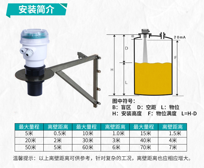 電流輸出:4 ~ 20mA 可設(shè)定對應(yīng)物位 / 距離測量范圍,最大負(fù)載 500 Ω,輸出精度 0.2%FS