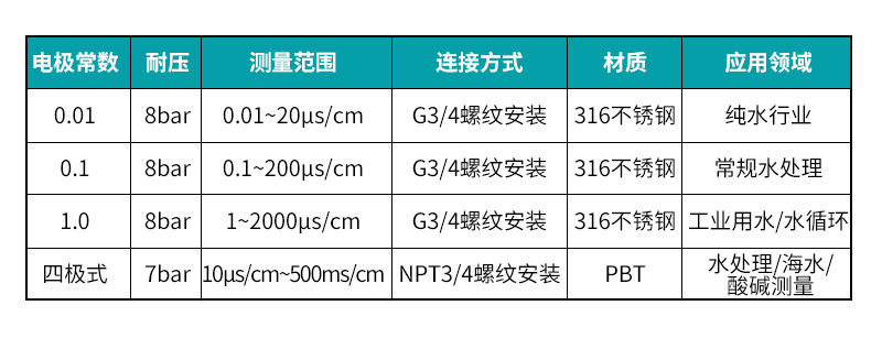 適用場合:無論是常見的自來水,鍋爐給水,純水,超純水,還是工業用水,海水,污水等,米科MIK-EC8.0電導率儀搭配不同電極,都能很好地適應現場測量