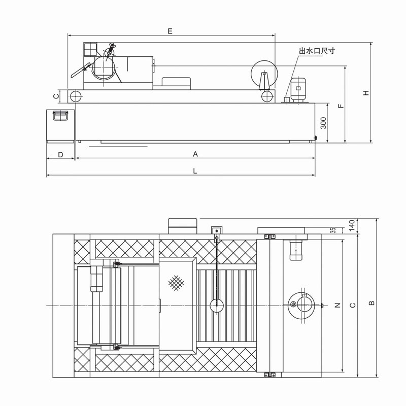 | 型號 | 容積L | 流量L/min | 電機功率 | A | C | D | E | F | N | M | 入水口 | L*B*H |