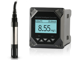 采用極譜式電極,陽電極為Ag/AgCl、陰電極為鉑金(Pt)組成,兩者之間充滿特殊成份的是電解液。由硅橡膠滲透膜包裹于電極四周。測量時,電極間加上675mV的極化電壓,氧滲透過隔膜在陰極消耗,同時等量的氧在陽極產(chǎn)生,這個動態(tài)過程進行到兩邊的氧分壓相同時達到平衡.此時兩電極間的電流與氧分壓成正比,二次表檢測到此電流,再經(jīng)過一系列變換,得到氧濃度和氧含量.同時,NTC(負溫度系數(shù)熱敏電阻)檢測被測量液的溫度,二次表采樣后進行溫度補償,將氧濃度或氧含量折算成25℃時的值。