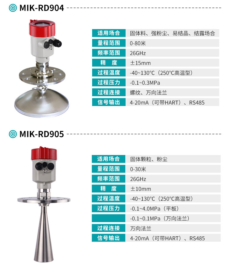 米科MIK-RD903/904/905高頻雷達(dá)料位計,26G高頻系列可用于需要發(fā)射角度小精度高的場合。
