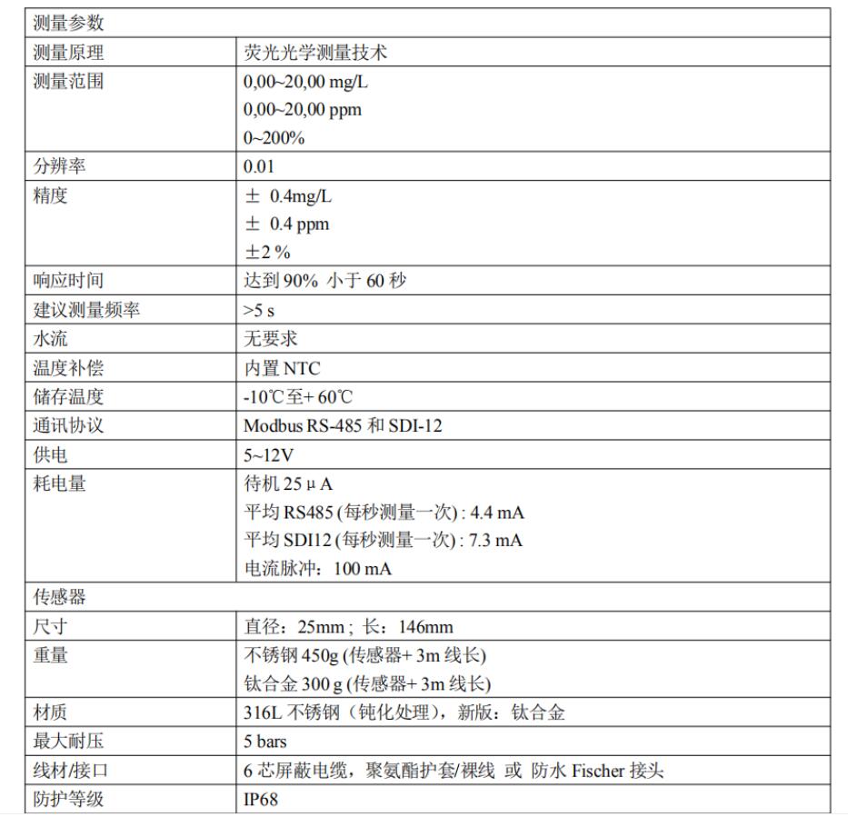 13758257245 傳感器是基于熒光猝熄原理,綠光照射到熒光物質時使熒光物質激發并發出紅光,由于氧分子可帶走能量,所以激發的紅光的時間與氧分子的濃度成反比,通過測量紅光的持續時間就可以計算溶解氧的濃度。